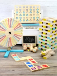Zabaven otroški mini golf za dom in vrt iz kakovostnega FSC certificiranega lesa. Set vsebuje 3 velikosti palic, mehke varne žogice in prilagodljive ovire (val, gugalnica, tunel idr.), ki jih zlahka prilagodite starosti in spretnostim. Odlično uri spretnost in zbranost ter ponuja sodoben dizajn z vzdržljivo izdelavo.