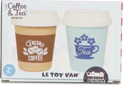 Stilski otroški komplet dveh lončkov za kavo in čaj za s sabo znamke LE TOY VAN za realistično igro. Izdelano iz FSC lesa, brez plastike in pobarvano z netoksičnimi barvami na vodni osnovi. Odlično za otroško kuhinjico in igro trgovinice, spodbuja kreativnost in razvoj socialnih veščin.