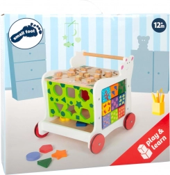 Zaradi gumiranih koles je premikanje tiho in prijazno do vseh vrst tal. Hojica ponuja tudi shranjevalni prostor za kocke in drobnarije, zato je igralni kotiček vedno hitro pospravljen.