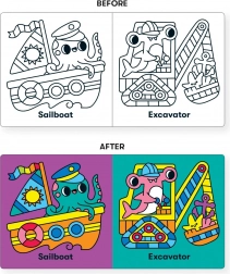 Ta izvirna vodna knjižica MUDPUPPY z motivom morskega življenja otrokom prinaša veselje pri vsakem kopanju. Po potopitvi v vodo se slike takoj obarvajo in razkrijejo skrite podrobnosti, ki spodbujajo radovednost in razvoj čutov. Knjižica je lahka, prijetna na dotik in varna tudi za najmlajše.