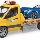 Vlečno vozilo BRUDER na osnovi MB Sprinter navduši z dovršeno izdelavo in bogato funkcionalno opremo. Otroke razveselijo rotacijska luč s svetlobo in zvokom, realistična rampa z izvlečnimi drsniki in zapornimi klini ter odpirajoča se vrata in stranske omarice. Del kompleta je športni kabriolet z odstranljivo streho in zamenljivimi kolesi.
