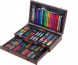 Ta osupljiva ustvarjalna zbirka je idealna za vse, ki želijo eksperimentirati z različnimi umetniškimi tehnikami. Prihaja v udobnem lesenem kovčku, kjer boste našli vse potrebne pripomočke skrbno urejene v preglednih predalih.