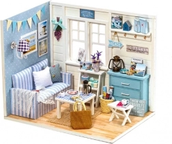 Zgradite svojo lastno leseno dnevno sobo za lutke z LED osvetlitvijo. Ta čudovit komplet je idealen tako za otroke starejše od 8 let kot tudi za odrasle, ki želijo vaditi potrpežljivost in občutek za estetiko.