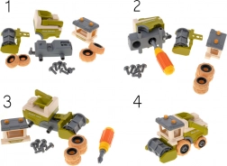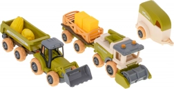 Traktor, kombajn in prikolice lahko zlahka razstavite in ponovno sestavite s pomočjo izvijača in akumulatorskega vrtalnika. Otroci vadijo fino motoriko in razumejo osnovna načela gradnje strojev.