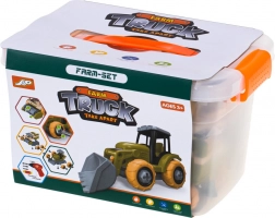 Velika otroška farma v priročnem zaboju: razstavljiv traktor, kombajn in prikolice, živali ter figurica kmeta. Vijačenje z akumulatorskim vrtalnikom in menjava delov razvijata fino motoriko, logično razmišljanje in kreativnost. Za otroke od 3 let.