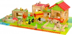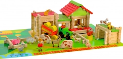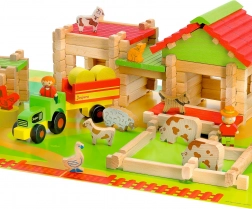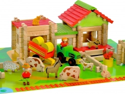 Ta sestavljanka spodbuja otroško ustvarjalnost in jim omogoča, da si ustvarijo lastno kmetijo z rdečo streho, zelenim traktorjem in številnimi živalmi.