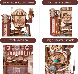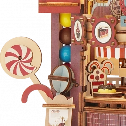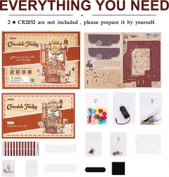 Uresničite sanje o lastni tovarni čokolade z uporabo dovršene sestavljanke krogličnega dirkalnika iz vezane plošče. Kroglice sladkih barv potujejo po robotski proizvodni liniji skozi številne ovire, ki jih spremljajo najfantastičnejši prizori iz proizvodnje sladkarij. Nekatere ovire uporabljajo učinek prozornega akrilata ali pa vrata, ki se odpirajo, da si lahko podrobno ogledate vragolije kroglic. Stranke lahko privabite z majhnim zvončkom z nežnim zvokom in bogato osvetljeno tablo (baterije so priložene). Sestavljanke krogličnih dirkalnikov Robotime ponujajo podrobnosti in raznolikost, ki jih ne vidite nikjer drugje. Vsaka se ponaša z izvirnimi funkcionalnimi detajli in raznovrstnimi ovirami, ki pogosto domiselno spremenijo pot kroglice ter tako prinašajo izjemno zabavo. Mehanika je poganjana z ročnim pogonom, obračanjem kljuke, s katerim so kroglice redno dvigane in spuščene na pot. Sestavljanka je dobavljena v nerazstavljenem stanju, pakirana v škatli. Opremljena je s podrobnimi navodili za sestavljanje.   Glavne lastnosti:sestavljanka dirkalnika s kroglicami420 natančno izrezanih delovvisoka težavnost sestavljanjaosvetlitveni učinek (2×CR2032 bateriji sta priloženi)kovinski zvonec