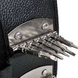 Praktičen etui zagotavlja varno shranjevanje vseh komponent in preprečuje njihovo izgubo. Posamezni nastavki so varno pritrjeni s posebnim držalom, kar olajša njihovo izvzemanje.