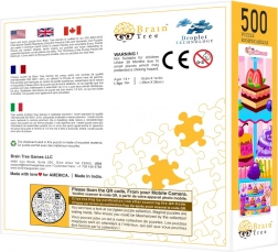 Sestavljanka V Slaščičarni znamke Brain Tree prinaša edinstveno izkušnjo zahvaljujoč naključno rezanim kosom, ki dodajo sestavljanju pridih pustolovščine. Vsak kos je original, kar zagotavlja zabavo pri vsakem sestavljanju. Mat obdelava omogoča lepo prikazovanje tudi ob spreminjajočih se svetlobnih pogojih.