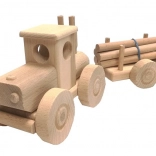 Ta naravni leseni traktor s prikolico za hlode bo razveselil male voznike in ljubitelje klasičnih igrač. Natančno izdelan model iz bukovega lesa ponuja gladko vožnjo, vzdržljivost in brezčasen dizajn brez lakov in kemičnih obdelav.