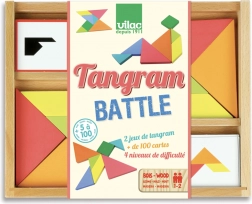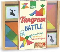 Dvoboj tangramov znamke VILAC je hitra in napeta namizna igra, ki razvija logiko, koncentracijo in ustvarjalnost. Cilj je čim hitreje sestaviti barvne dele v silhueto, prikazano na kartici. Zaradi različnih stopenj težavnosti bo igra navdušila vso družino.