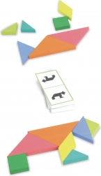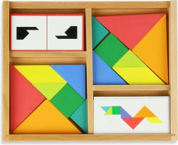Zabavna in pametna igra za 1–2 igralca: kdor prvi sestavi lik po kartici, zmaga! Več kot 100 kartic, 4 stopnje težavnosti in 2 popolna kompleta tangramov iz kakovostnega lesa. Odlično vadi logično razmišljanje in prostorsko predstavo pri otrocih od 5 let in odraslih.