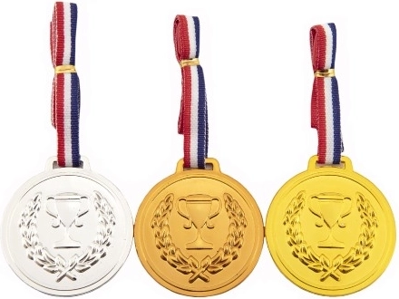 V našem pakiranju najdete tri plastične medalje, ki odlično služijo na otroških tekmovanjih in igrah: