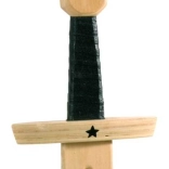 Postanite junak s tem kakovostnim lesenim mečem! Izdelan je iz trdne vezane plošče, z udobnim črnim ročajem in motivom zvezde – idealni dodatek h kostumu in za varno otroško igro. Lahek, vzdržljiv in dobro ležeč v roki za male viteze od 3 let dalje.
