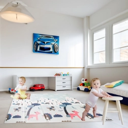 Prednosti te igralne podloge vključujejo odpornost proti obrabi in enostavno vzdrževanje – dovolj je, da jo obrišete z vlažno krpo. Podloga bo navdušila vsakogar malega ljubitelja avtomobilov, hkrati pa spodbujala otroško ustvarjalnost in omogočala varno raziskovanje sveta.