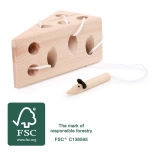 Ta čudovita prepletalna igra v obliki sira in male miške je izdelana iz naravnega, lakiranega bukovega lesa s certifikatom FSC. Pri prepletanju vrvice otroci urijo koordinacijo oko–roka, zbranost in fino motoriko. Zaradi prijetne lesene izdelave je igra varna, trpežna in idealna za vsakodnevno igro.
