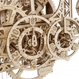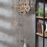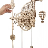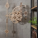 Ugears Aero so stenske mehanske ure iz kakovostne vezane plošče, ki jih sestavite sami brez lepila. Očarljiv pogled na odkrit urni mehanizem z nihalom in utežjo ponuja edinstveno izkušnjo natančnega inženirstva. Čas odčitavate z dvojnih številčnic, ki se vrtita v nasprotni smeri urinega kazalca, medtem ko dekorativni model toplozračnega balona redno naraste in se vsako polno uro znižanjem oglasi.