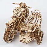 Po končanem sestavljanju dobite impresiven model motorja s stranskim priklopnikom, ki krasi polico in razveseli vsakega ljubitelja tehnike.
