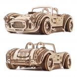Uživajte v pristni izkušnji gradnje in vožnje. Lesena mehanska sestavljanka UGEARS Drift Cobra vsebuje 370 lasersko natančno izrezanih koščkov, ki se sestavijo brez lepila. Po sestavljanju dobite vodljiv model s funkcionalnim vzmetnim motorjem, krmilno zavoro in menjalnikom za prosti tek ter vzvratno prestavo.