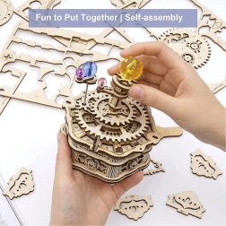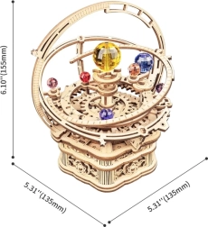 3D mehanska lesena sestavljanka z glasbeno skrinjico (orrerij)