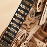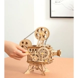 Mehanski prenosi, tuljave in patiniran videz spremenijo model v stilski okras. Idealno darilo za ljubitelje kinematografije, tehnike in 3D sestavljank.