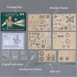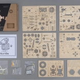 Komplet vsebuje vse potrebno: predrezane dele iz vezane plošče, jeklene osi, diodo, filmski trak ter ilustriran priročnik z QR kodo do montažnega videa. Model je odlično darilo in hkrati dizajnerska dekoracija za delovno sobo ali dnevni prostor.