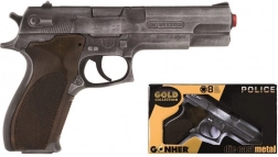 Stilska policijska pištola iz edicije Gold Edition v elegantni srebrni kovinski izvedbi za kapsule z 8 streli. Odlična izbira za otroške igre policistov in za zbiratelje, ki cenijo kakovostno izdelavo in avtentičen videz.