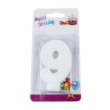 Elegantna rojstnodnevna svečka v obliki številke 9 z nežnim bleščanjem je popolna izbira za poseben trenutek pihanja želja. Zaradi čiste bele izvedbe in bleščic se odlično poda k različnim slogom tort in dekoracij.