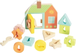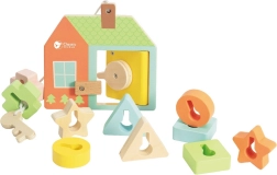 • - sestavlja jo vrvica s ključem, 11 kock različnih oblik in lesena hišica