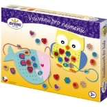 Ta vezenje set je idealen za razvoj motoričnih veščin in ustvarjalnosti pri otrocih od 3. leta starosti. S pomočjo barvnih predlog v obliki sove in ribice se otroci naučijo natančnosti in potrpežljivosti.