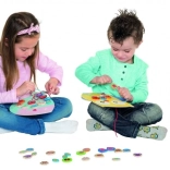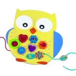 Priljubljena igrača za razvoj fine motorike, domišljije in potrpežljivosti otrok z motivi sove in ribice. Set vsebuje 35 kosov lesenih komponent in 4 vezalke za neskončno zabavo.