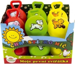 Vesela otroška ropotuljica v obliki žogice s praktičnim ročajem razveseli dojenčke od rojstva. Zahvaljujoč lahki zasnovi in udobnemu držanju podpira fino motoriko, koordinacijo oko–roka ter pritegne z pisanimi barvami in ljubkimi živalskimi motivi. Odlična izbira za čutno raziskovanje in prve igre.