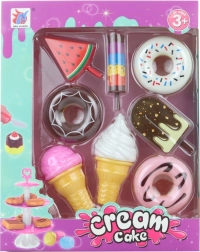 Igriv komplet za male slaščičarje in slaščičarke vsebuje 8 kosov plastičnih tortic in sladoledov, idealno za igro slaščičarne, trgovinico in otroško kuhinjico. Lahki in trpežni plastični deli so primerni za otroke od 3 let ter spodbujajo domišljijo in socialne veščine.
