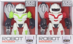 Plastični robot na baterije s ščitom in pištolo. Robot hodi, se vrti, oddaja zvoke in sveti. Napajanje na 3 baterije AA (niso priložene). Dimenzije robota približno 16 x 21 cm. Dimenzije pakiranja približno 19,5 x 24 x 9,5 cm. Starost 3+.