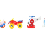 S tem kompletom vozil za privijačenje bo vaš otrok doživljal ure zabave in učenja. Zahvaljujoč priloženemu akumulatorskemu vrtalniku (2 AA bateriji, baterije niso priložene) si otroci lahko sami sestavljajo in razstavljajo igrače, kar spodbuja razvoj fine motorike.