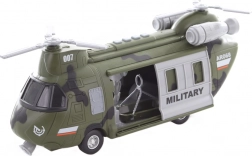 Realistični vojaški helikopter v merilu 1:16 bo razveselil vsakega malega pilota. Ob pritisku na gumb se prižge in predvaja avtentične zvoke. Napajanje zagotavljajo 3× AG13/LR44 baterije, ki so priložene v paketu. Idealno darilo za otroke od 3 let.
