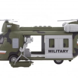 Ta podrobno izdelan vojaški helikopter na baterije otrokom prinaša veliko zabave in možnosti za ustvarjalno igro. Ob pritisku na gumb se aktivirajo svetlobni efekti in zvoki, ki podprejo vzdušje akcijskih misij.