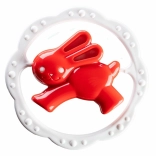 Teksturiran obroč nežno masira dlesni in pomaga umiriti dojenčka v obdobju rasti prvih zobkov.