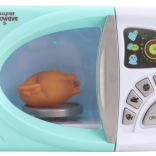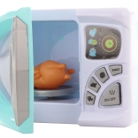 Ta otroška mikrovalovka v turkizno-beli barvni kombinaciji je idealen dodatek za vsako otroško kuhinjico. Po vklopu se krožnik v notranjosti vrti, igro pa spremljajo svetlobni učinki, ki verno posnemajo pravi aparat.
