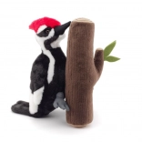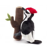 Ta plišasti detel z značilnim rdečim čopom in kontrastnim črno-belim perjem je pritrjen na mehak »drevesni« trup z listi, zato deluje maksimalno realistično. Zaradi nežnega pliša je idealen za cartanje, okrasitev otroške sobe in domiselno igro.