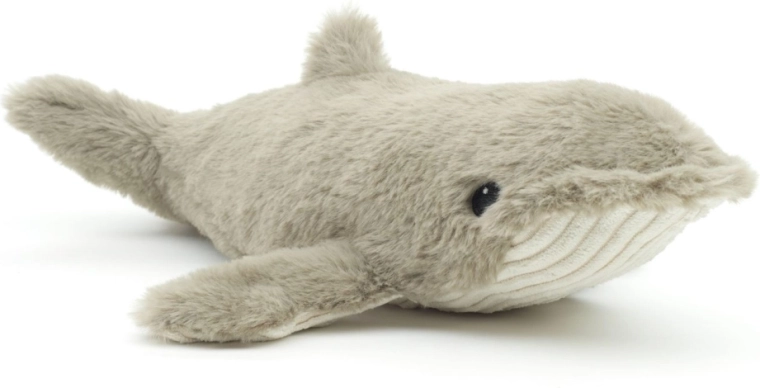 Plišasti kit grbavec ima premišljene podrobnosti, kot so plavuti in rep, ki poudarjajo njegov realističen videz.