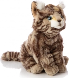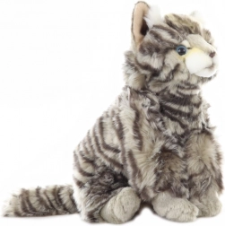 Ta plišasta mačka ima realistične vzorce in barvne nianse, ki ji dajejo avtentičen videz prave mačke.