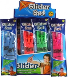 1× najlonsko jadralno letalo, 1× izstrelitvena palica z elastiko