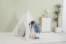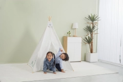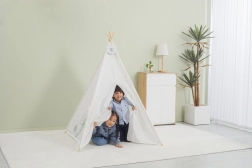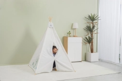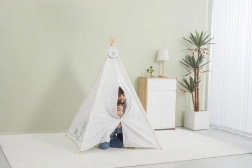 Z velikodušnimi merami se v šotor udobno prilegajo otroci, najljubše igrače in blazinice. Idealen je za domišljijske igre, branje knjig in počitek. Šotor lahko uporabljate v notranjih prostorih in na prostem – odlična izbira za poletje na vrtu ali terasi.