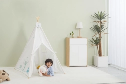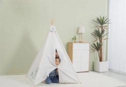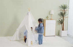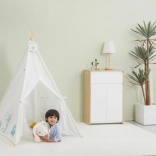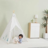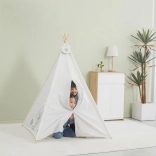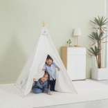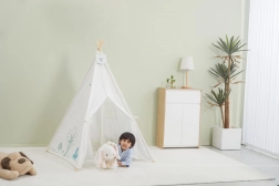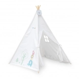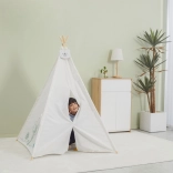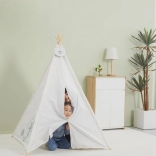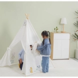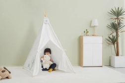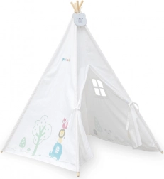 Teepee šotor POLARB spremeni vsak prostor v čarobno mesto, polno domišljije. Minimalističen dizajn v beli barvi z ljubkimi živalskimi motivi se odlično poda v modernejši interier in otrokom ustvari miren, navdihujoč prostor. Trdna konstrukcija z lesenimi palicami zagotovi stabilnost med igro, hkrati pa ga zlahka postavite in zložite.