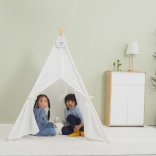 Ustvarite otrokom njihov lasten prijeten kotiček s tem stilskim teepee šotorom POLARB. Ponuja varno in udobno mesto za igro, branje in počitek. Zahvaljujoč enostavni montaži in stabilnim lesenim palicam je odlična izbira tako za otroško sobo kot za vrt. Prostorna izvedba z merami približno 121,6 × 121,6 × 150 cm nudi dovolj prostora za ustvarjalno igro in skrivalnice. Primerno za otroke od 3 let.