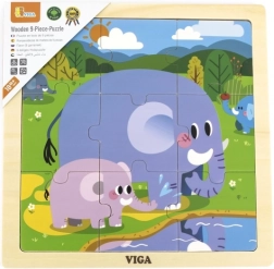 Klasične lesene sestavljanke z veselimi motivi slonov so idealna prva sestavljanka za najmlajše. Trdni deli se zlahka primejo in sestavljajo na priloženo ploščo, ki pomaga pri orientaciji in ohranja sliko skupaj.