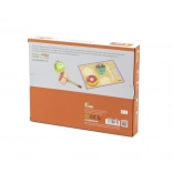 Idealno za skupna popoldanska čajanka, domišljijsko igro vlog in prve kulinarične zgodbe. Komplet podpira razvoj fine motorike, koordinacije in prepoznavanja oblik zahvaljujoč vodilnim utorom, kamor lahko otroci pravilno namestijo sladice.