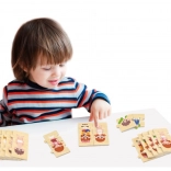 Ta kakovostna lesena izobraževalna igrača otroke uči pravilnega zaporedja oblačenja z zlaganjem zaporednih delov s podobami dečka in deklice. Vsak del ima edinstven motiv in natančno sodi skupaj, zato otroci med igro urijo razumevanje povezav in potrpežljivost.
