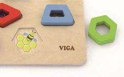 Lesena vstavljanka VIGA – številke in liki je odličen način, kako otroke seznaniti s prvimi številkami in osnovnimi geometrijskimi liki. Zaradi živih barv in trdne lesene izdelave si otroci vadijo koordinacijo oko–roka, razlikovanje likov in barv ter logično razmišljanje. Vsak košček ima svoje mesto, kar spodbuja potrpežljivost in zbranost.